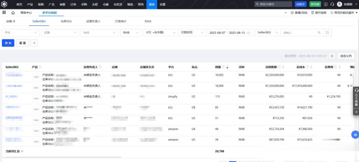 - SKU 利润:易仓ERP支持看普品/同款/套装的销量和毛利,为不同产品结构提供更精细的盈利能力分析。